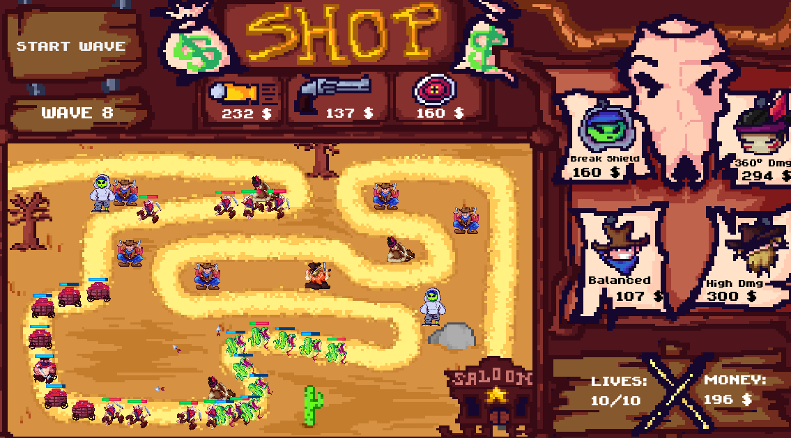 Westpath is a tower defense game about protecting a saloon from bandits, gangsters and other ennemies.